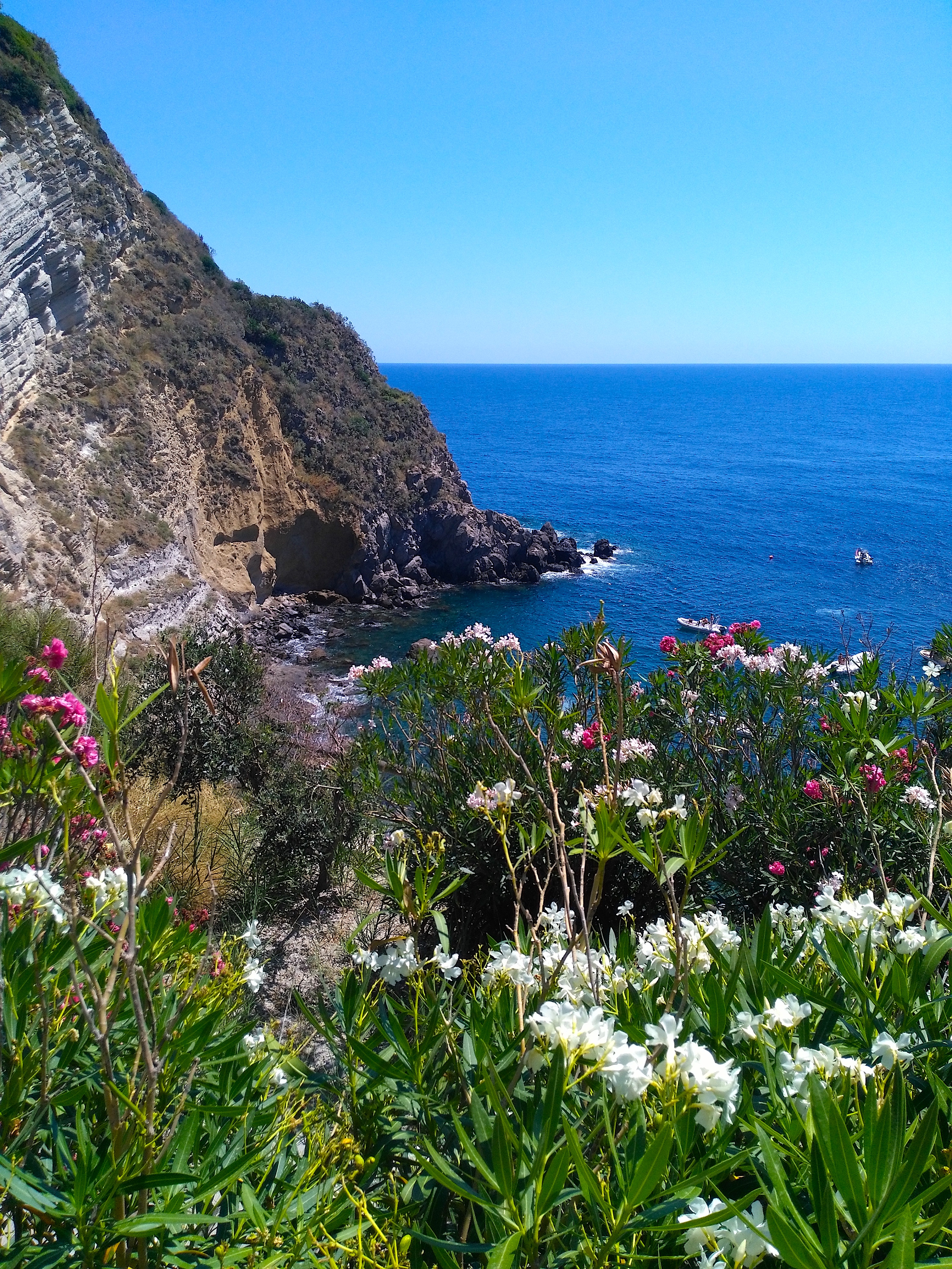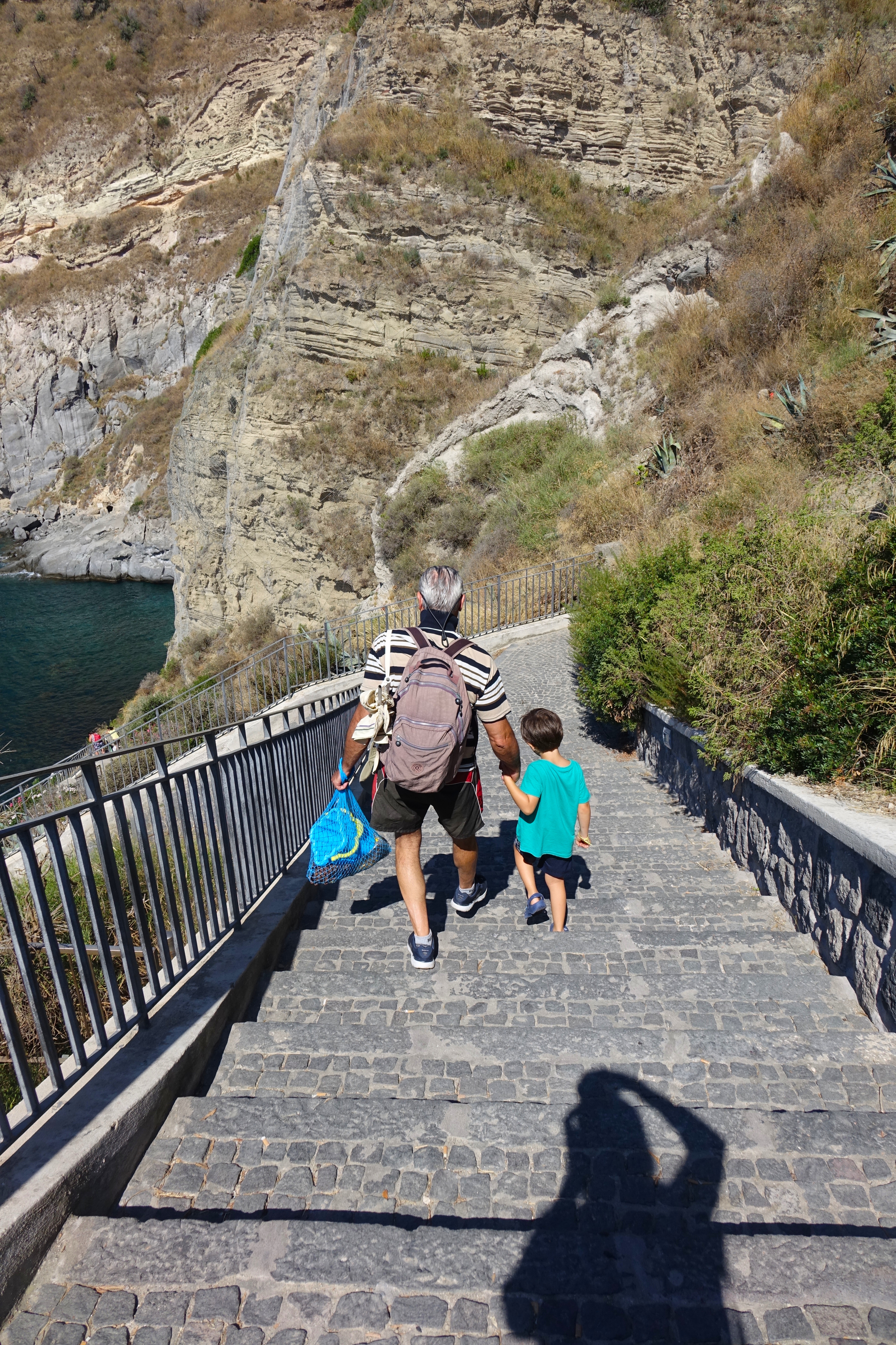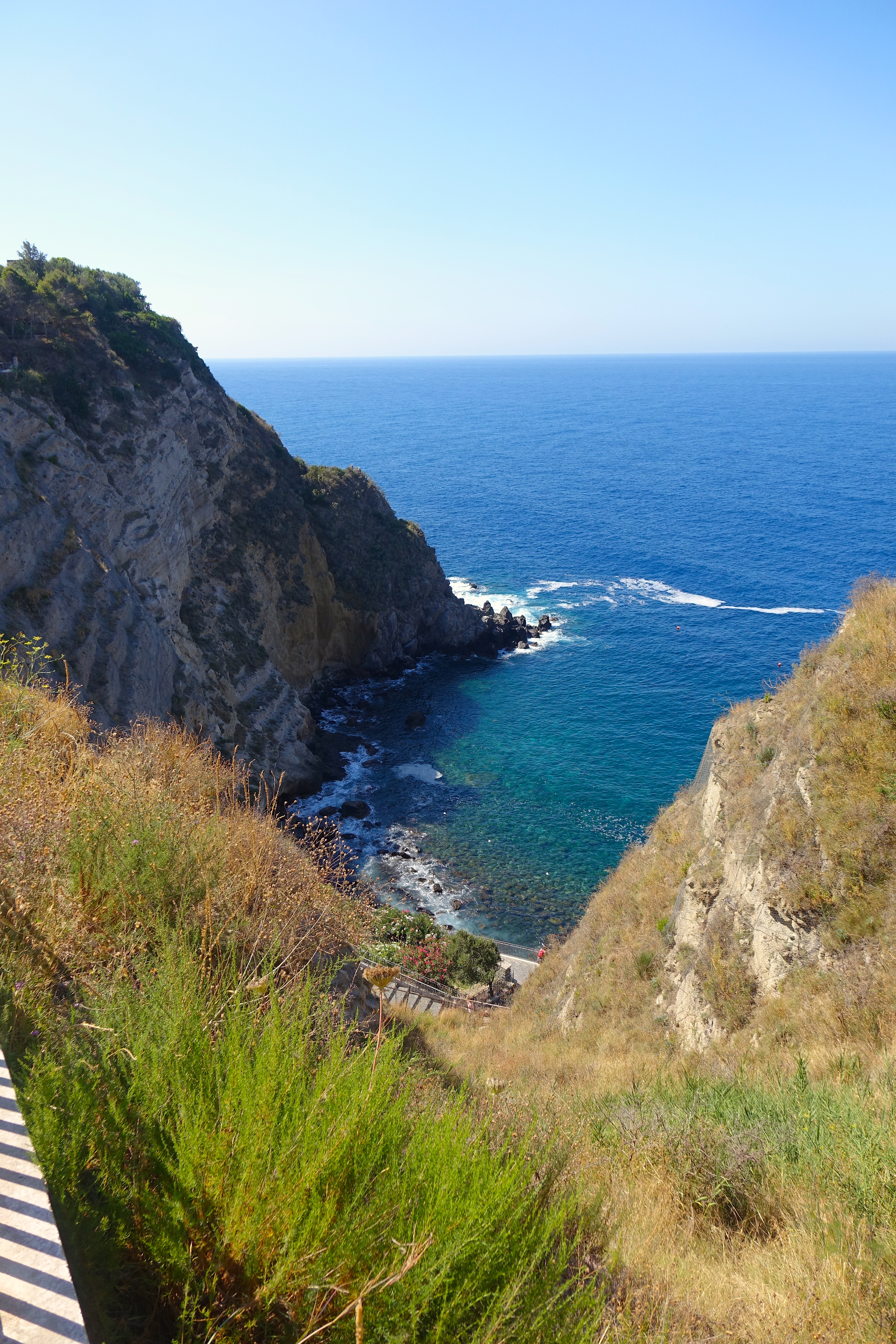 The Hot Springs of Sorgeto, one of Ischia’s most amazing natural wonders, is a favorite spot of ours to relax amidst the simple beauty of nature, bathe leisurely in the sea, and enjoy a more than delicious lunch. To arrive, we usually head to the village of Panza, then make our way down the 230 or something cobblestone steps to the sea. But it’s also reachable by boat from the port of the pretty, picturesque village of Sant’Agnelo, for those who are not inclined to take the steps.