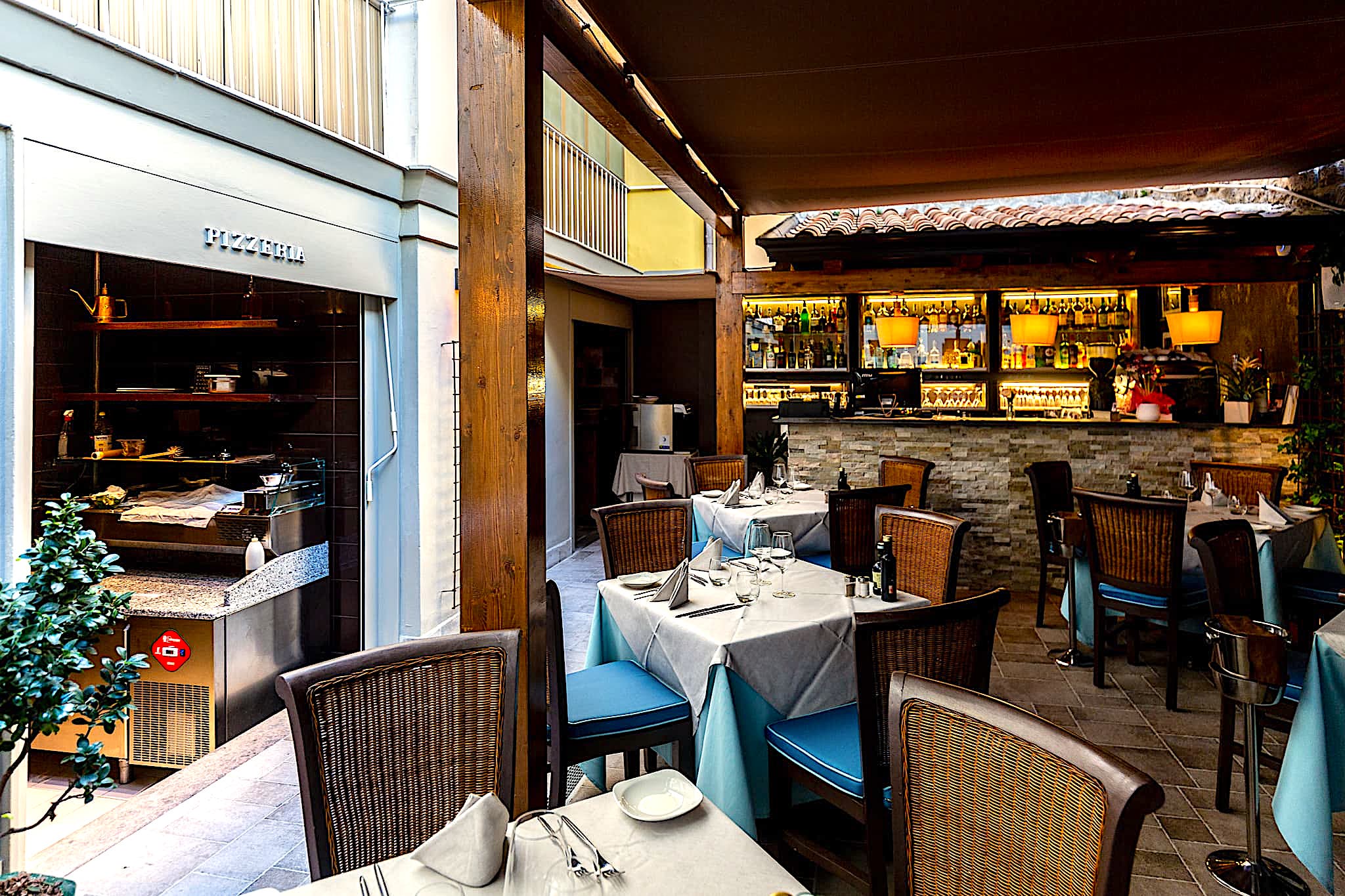 The main dining room is the perfect place to enjoy a romantic dinner. As always, based on a menu that features the classic dishes of the Sorrento Coast and newly inspired creations dreamt up by the chef, which are all designed around flavour and simplicity and best quality seasonal and artisanal ingredients. The ambiance is warm and intimate, with the high stone arches crowning the sleek interior, Italian ceramic floor tiling, white walls adorned with stunning photos of Sofia Loren, wooden furniture draped with white napery, and dim lights softly illuminating the room.