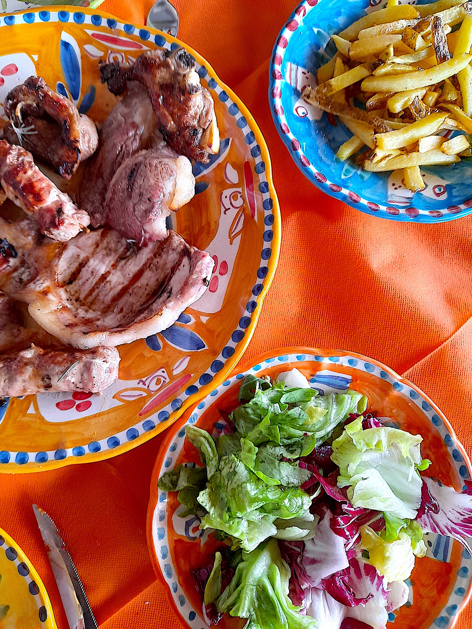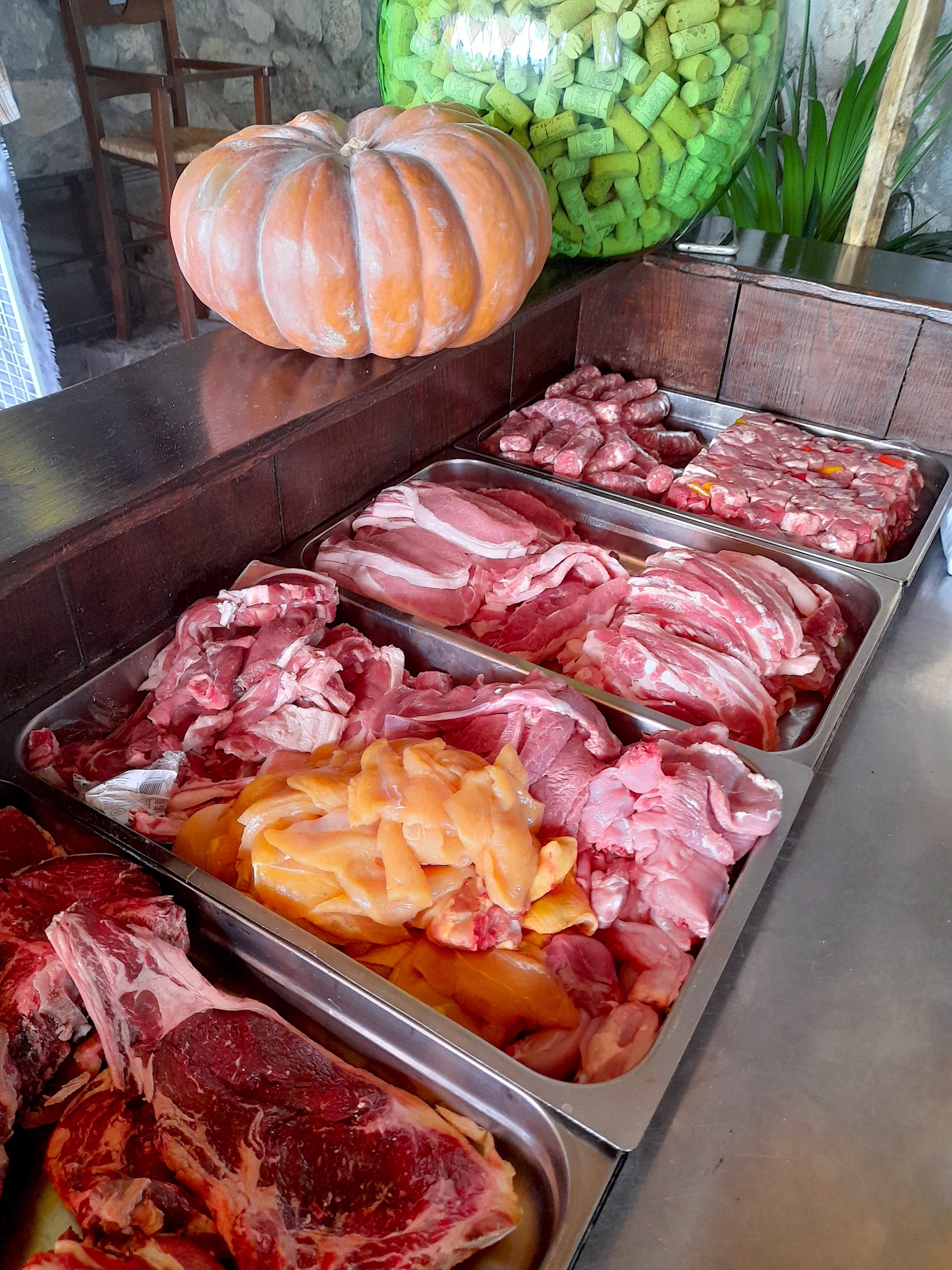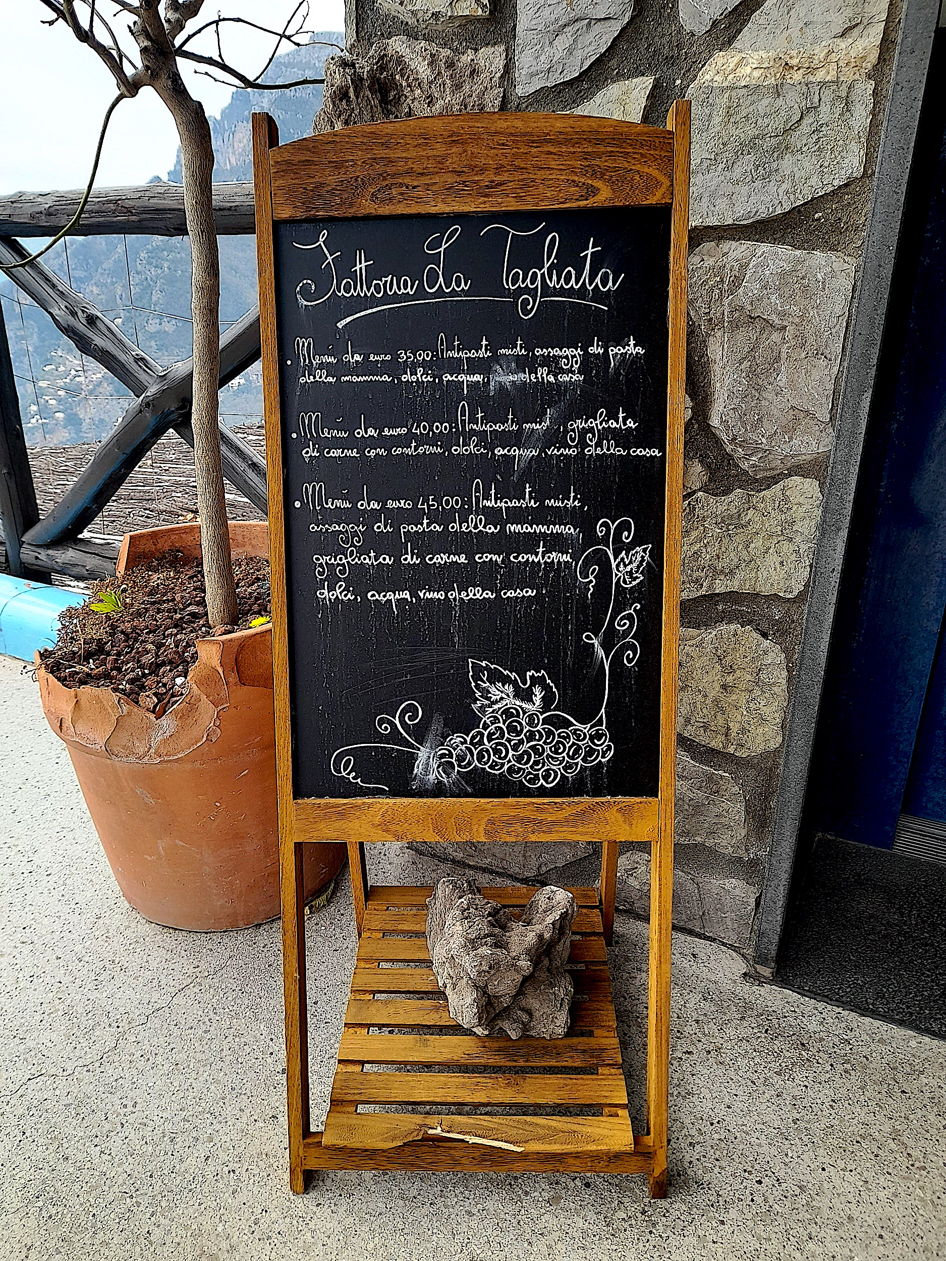 There are three options. The first option is £35 per person and includes a savory mix of appetizers; primarily vegetable and bean dishes, some cured meats and cheeses, and other wholesome farm fresh specialties of the area, a mix of homemade pasta dishes and desserts—plus water, house wine and a shot of their delicious homemade limoncello (lemon liquor). The second option is £40 and is the same, but substituting the homemade pasta dishes for a mix of grilled free-range meats and side dishes. The third is £45 and includes all of the 4-courses.