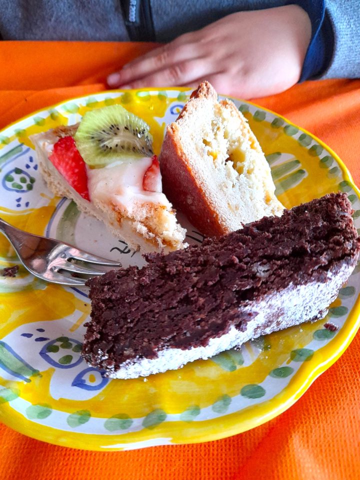 The sweet endings to the meal are always a highlight, especially for my son; the fresh fruit pies, rustic cakes filled with ricotta and pastry cream, chocolate and almond cakes from the island of Capri, and all else typical from the area. But the “icing on the cake” for him, and us too, includes a final good-bye-for-now to the farm animals; the donkeys, cows, and pigs —and glimpse of this little piece of paradise suspended between the sea and sky on the Amalfi Coast.