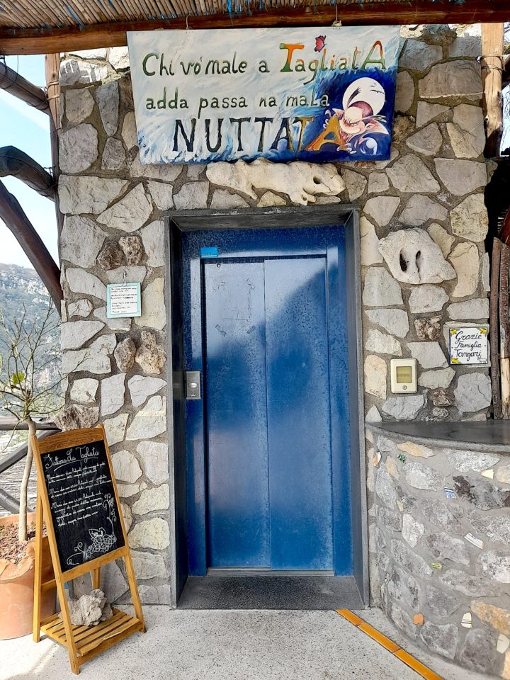 Upon arriving at Fattoria La Tagliata, customers are on the upper level of the establishment. Here they can opt to take the elevator down to the restaurant or to take a short stroll down the scenic pathway —which is a beautiful experience in itself.