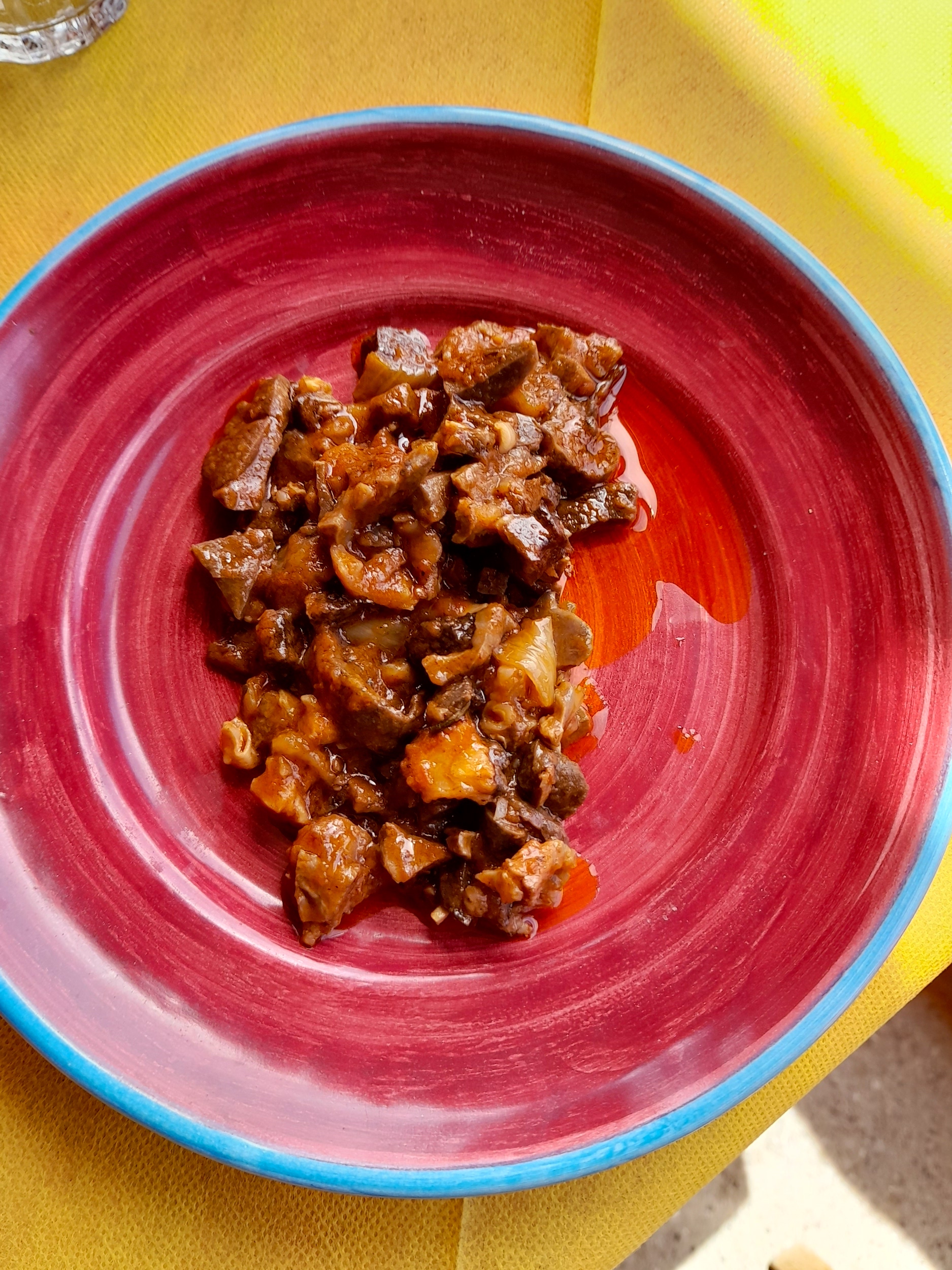 Sautéed fegato (liver) with spring onions and tomatoes, a specialty of the house at Fattoria La Tagliata