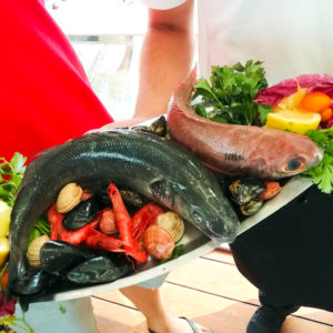 The “La Riccia” with mozzarella from Agerola, curly endive seasoned with anchovy sauce, semi-dried cherry tomatoes, olives from Taggiasca, anchovies from Cetara, and lemon zest