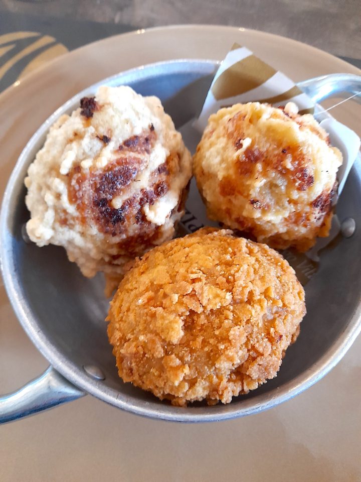 To stay true to tradition, try the “frittatina di bucatini” —bucatini tube pasta from Gragnano made with smoked provola from Agerola, peas, minced meat, Parmigiano, salt, pepper, nutmeg, and béchamel sauce, and covered with a delicate, crispy coating made with flour and water. They are mouthwateringly delicious, and, quite frankly, visually thrilling after the first bite when they reveal their oozy cheese and meat filled centres. Recently, we tried the “frittatina cuore di carciofo”—fettuccine pasta, artichoke hearts and artichoke cream, and covered with the same crispy coating made with flower and water, which was delightful.