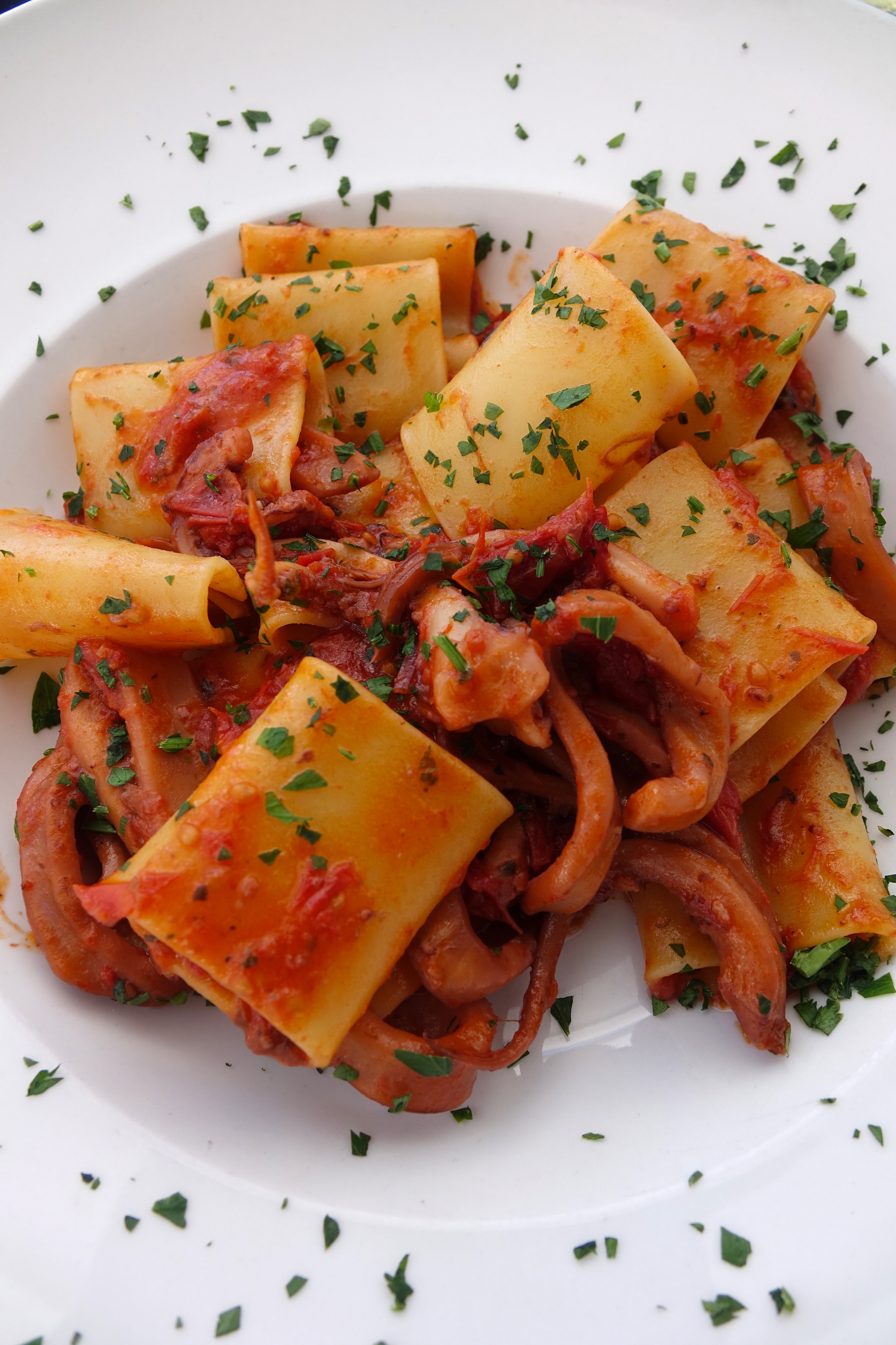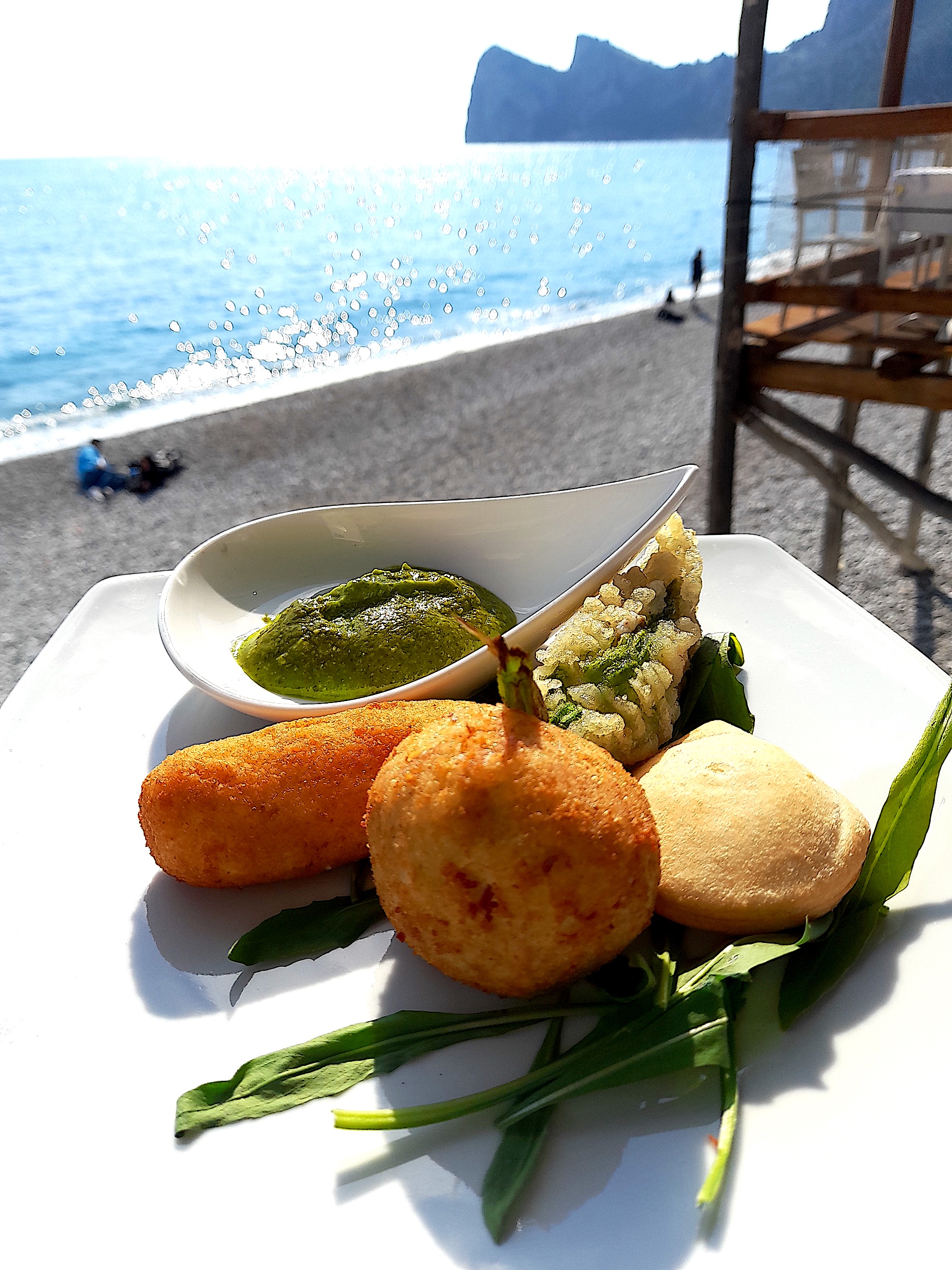 A fast but scenic boat ride from Amalfi’s port, this lovely restaurant and bathing establishment sits at waters edge on Santa Croce beach. This is an idyllic place to go if you would like to escape the frenzy of the city’s center for a while, dine on exceptional fish and seafood, and enjoy the relaxing lifestyle of the Amalfi Coast. Start the meal with the insalata di mare (cold fresh seafood salad) or the parmigiana di alici (anchovy parmesan), which is one of the best I have ever had. Follow up with the risotto alla pescatora (seafood risotto) or the large tube pasta with flying squid and tomatoes. For dessert, do not miss the sorbet filled frozen lemons. They are refreshing and perfectly sweet, a great top-off to the meal and palate cleanser as well. A wonderful experience. Open daily for lunch and dinner. Via Santa Croce, 1, 84011 Amalfi, SA, tel: 39 089 831237 – (explore more) –$$$