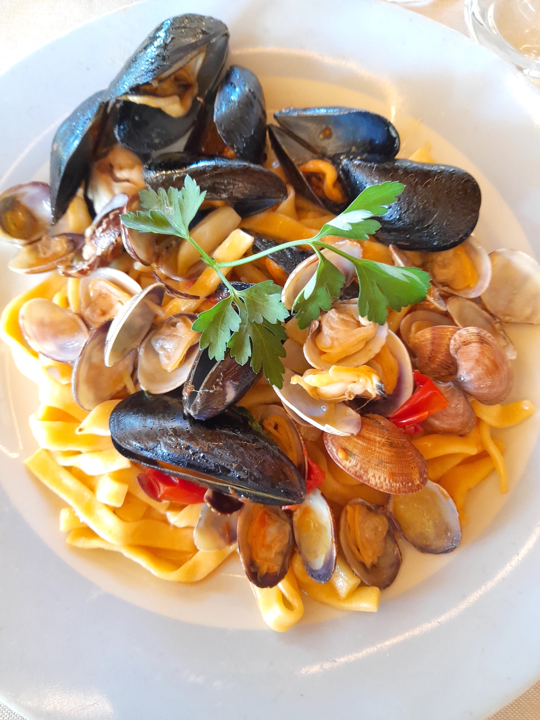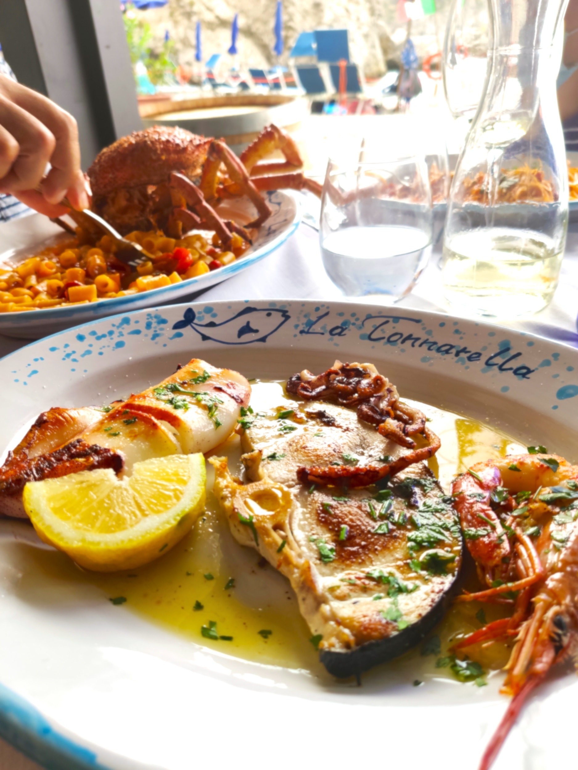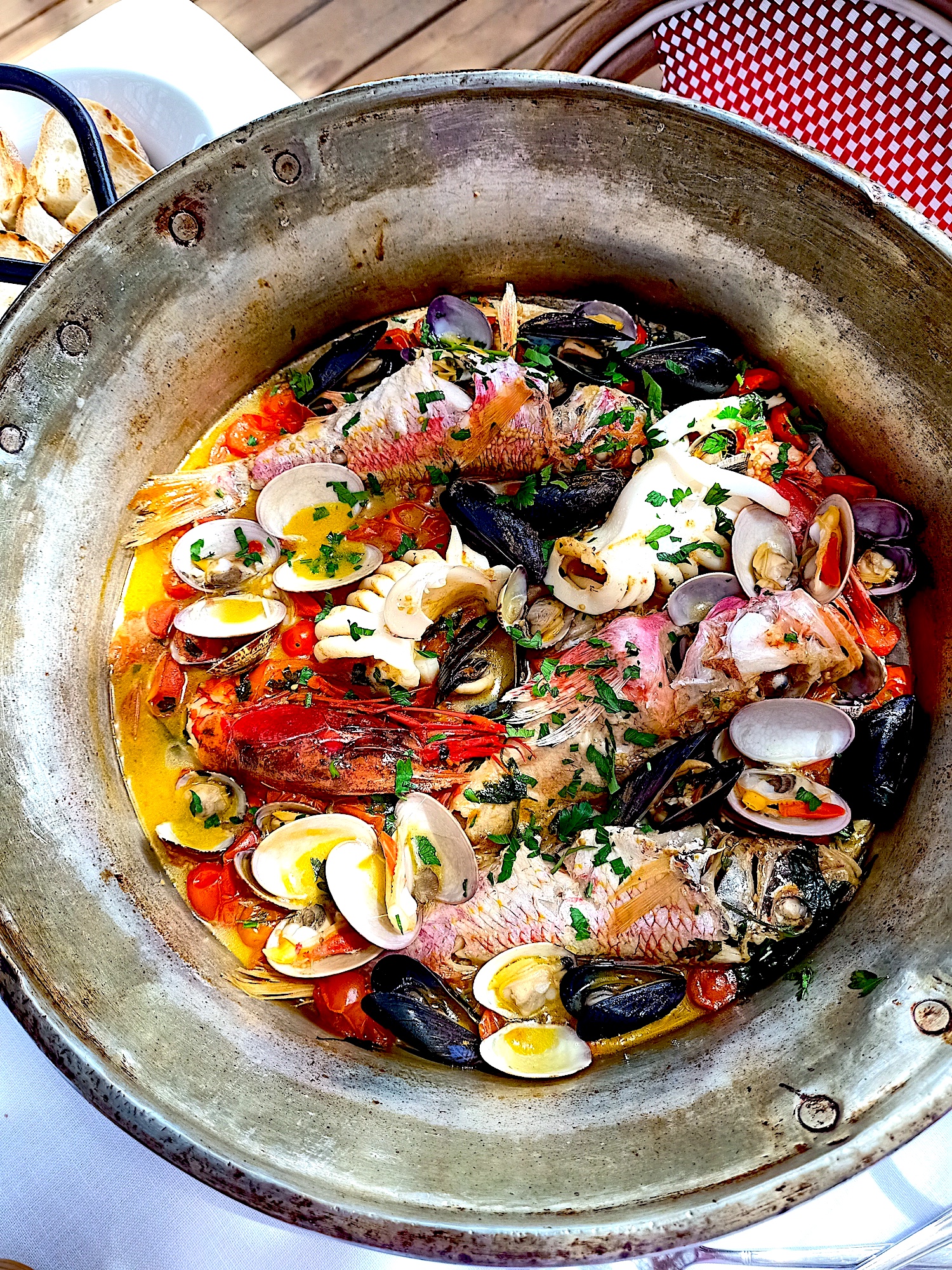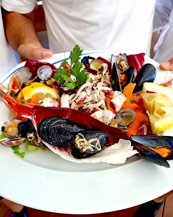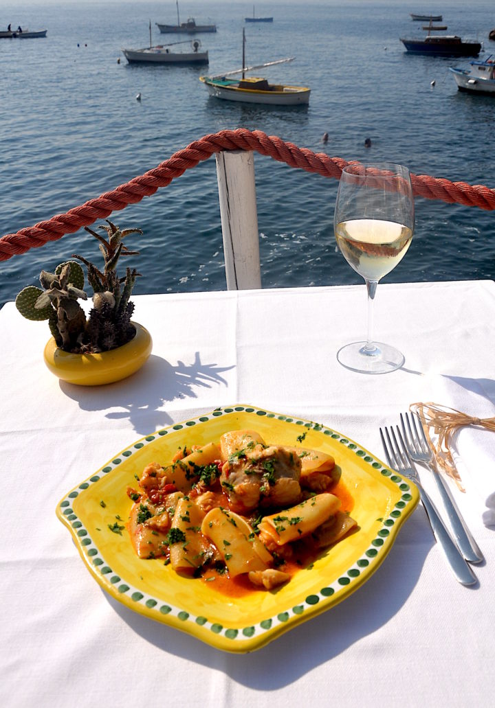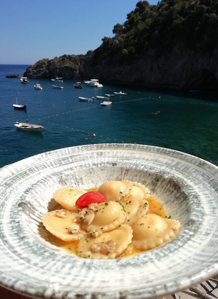 Nerano is not lacking wonderful sea front restaurants, but for a reasonably priced, good meal with very friendly service, and good house wine, this place is hard to beat. Laid-back, kid-friendly environment, too. To start the meal the antipasto della casa is a favorite, which includes a medley of small tasty plates of traditional Neapolitan specialties, such as deep-fried assorted treats, marinated fish and seafood, grilled marinated seasonal vegetables, and fresh milky, balls of mozzarella. The scialatielli ai fruit di mare (homemade pasta with a light clam and mussel sauce touched with tomato), risotto alla pescatora (fishermen style) are excellent as is the pesce all’acqua pazza (freshly-caught whole fish cooked in its own delicious broth). This is also the go-to place for pizza, as it’s the only restaurant on the beach with a traditional Neapolitan wood-fired oven. Open daily for lunch and dinner. Piazza delle Sirene, 1/A, 80061 Marina del Cantone, Massa Lubrense, NA, tel: +39 081 808 1113 – $$$