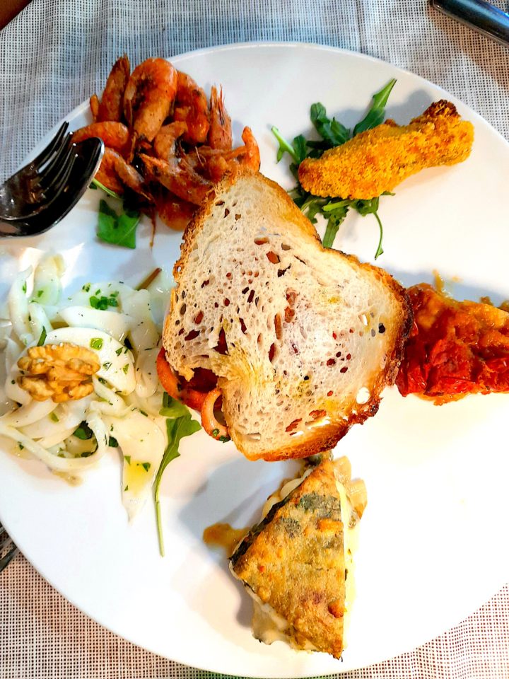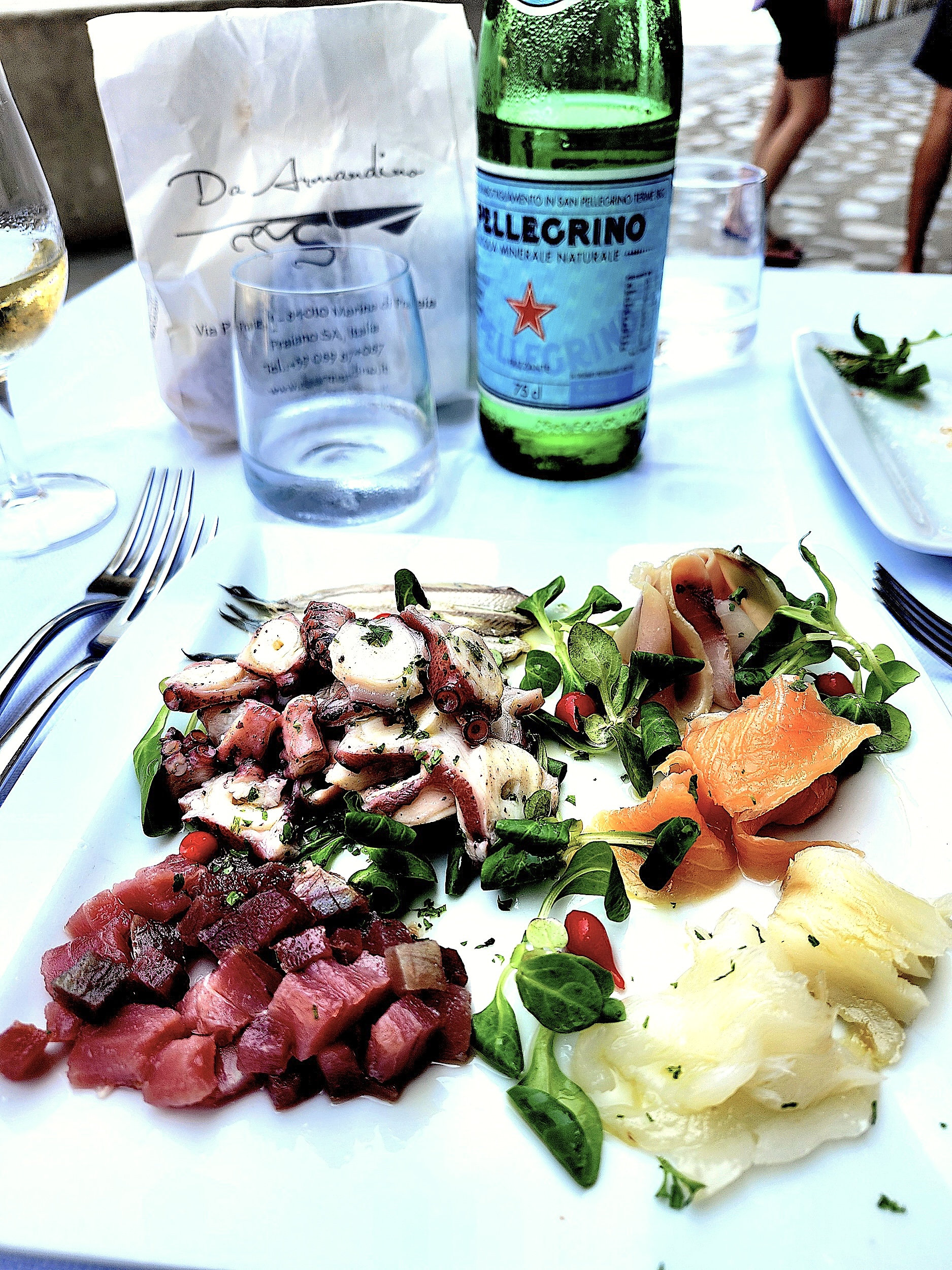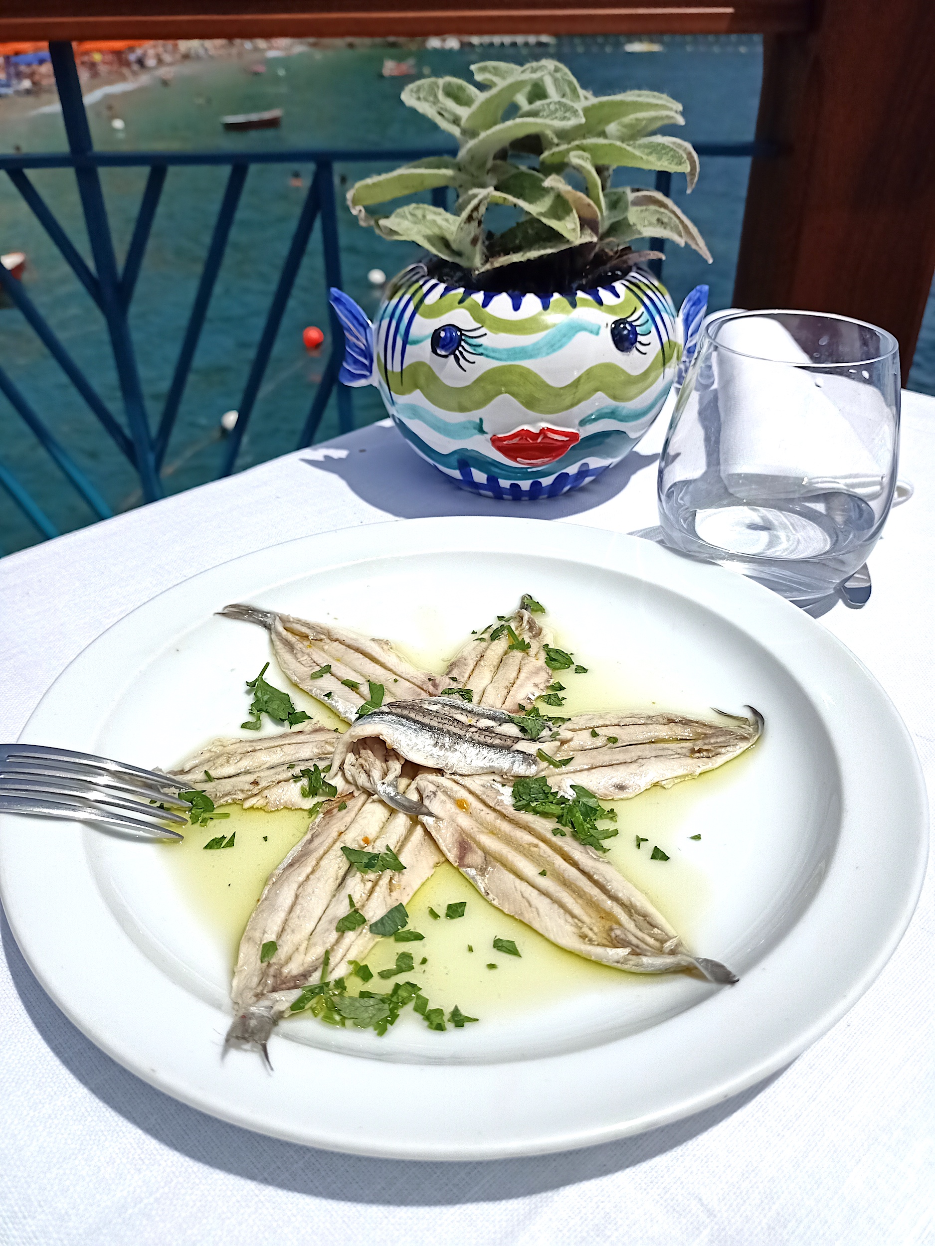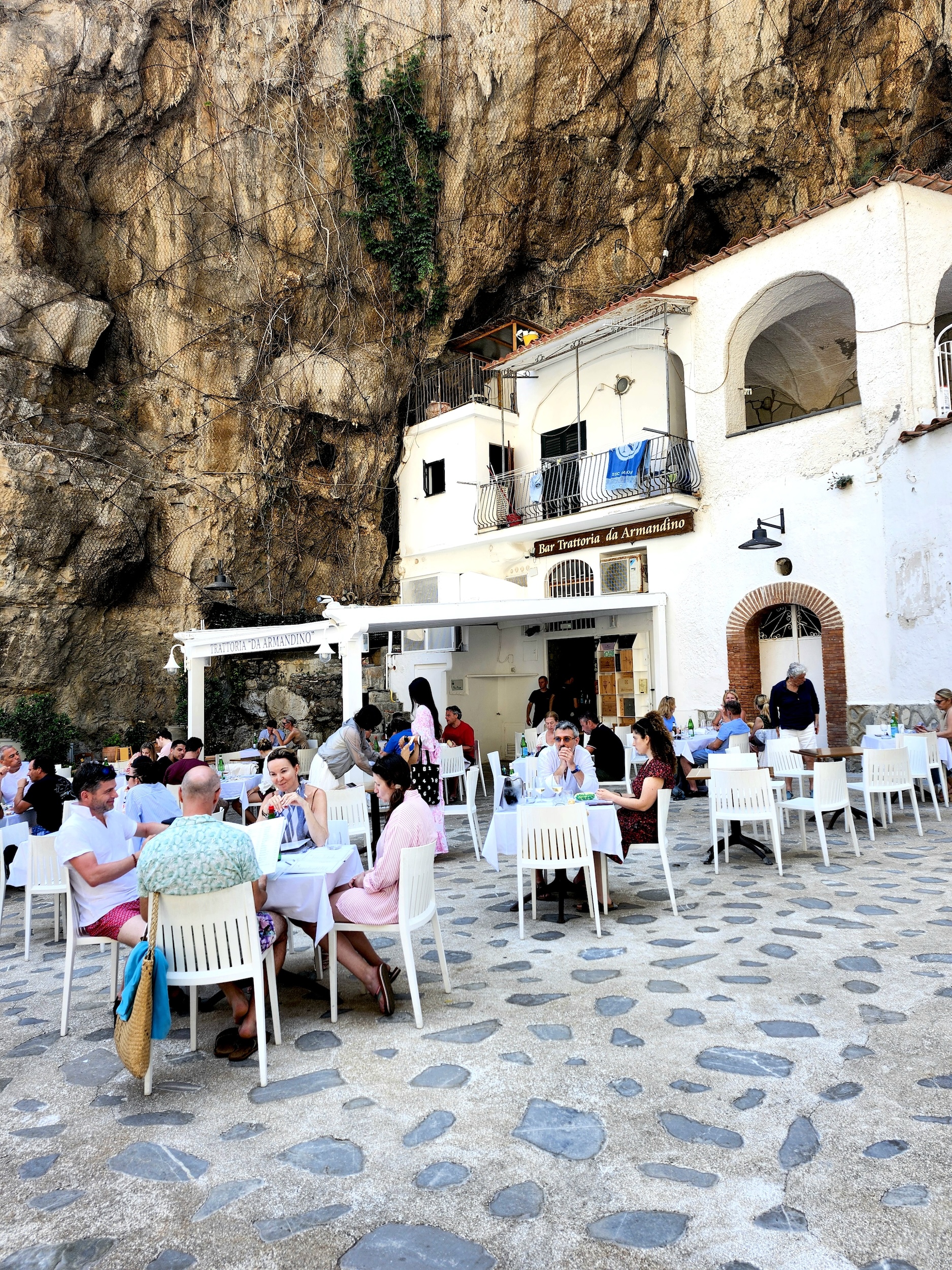 Set on the Marina di Praia, located in Praiano, Trattoria da Armandino is a local favorite that has been serving up simple, delicious fish and seafood dishes based on the catch of the day – since 1986. Here the owner, Armandino, and his attentive staff are pros at creating a pleasurable dining experience. It’s a perfect spot to dine on sautéed fresh mussels with tomatoes, an assortment of marinated fish, crispy deep-fried anchovies, and tubetti with totani (a local specialty dish) along with some chilled house wine, while gazing out at the crystal-clear emerald green waters and pretty pebbly beach enclosed by towering cliffs – which is especially enchanting in the evening when it’s illuminated. Or else, after a refreshing dip in the sea and some sun-soaked fun, the eggplant parmigiana is a simply delicious treat, accompanied by some good crusty slices of Italian bread (my son’s favorite). Open daily for lunch from 1 pm – 3:30 pm and for dinner from 7 pm-10:30 pm. Via Marina di Praia, 84010 Praiano, SA, tel:+39 089 874 087 – $$$