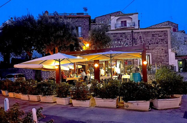 Situated in the charming hamlet of Annunziata in Massa Lubrense, with enchanting views of an ancient Saracen watch tower and 16th century church, Ristorante La Torre is a favourite neighbourhood place, and celebrated part of the Slow Food community in Italy. Husband-and-wife team Tonino Mazzola and chef Maria Aprea serve up delicious classics; thoughtfully crafted with traditional cooking methods and the very-best local ingredients. Try the homemade ravioli alla Caprese (little cushiony, cheese filled ravioli from the island of Capri), or the large tube pasta from Gragnano with a luscious red mullet fish and tomato sauce, for the first course. The parmigiana di melanzane (eggplant parmigiana), before or after, the first course, is sure to please. For the second course, try the fresh daily catch baked in the oven with potatoes, olives, and capers. Delicious. Local Food. Sorrento Coast. Open daily from 12 noon to 3:30 pm, 7- 11 pm, closed Tuesdays. Via Annunziata 7, 80061 Massa Lubrense, NA, tel: 39 081 808 9566 – (explore more) – $$$