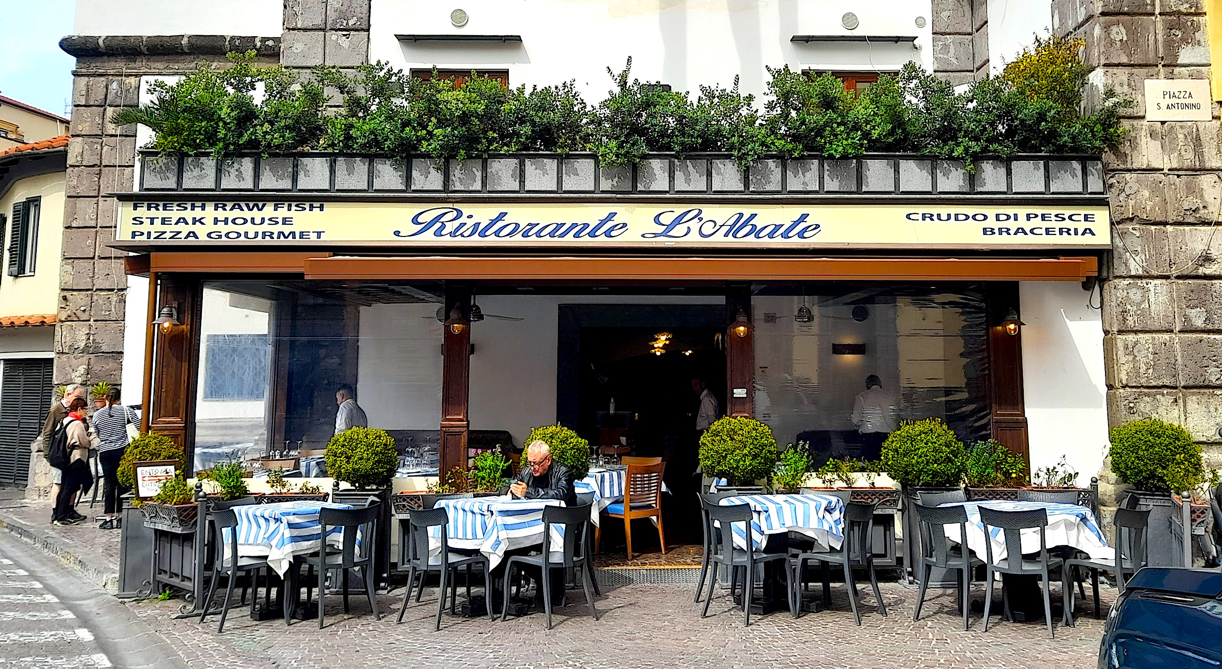Occupying a corner of the pretty, cobble-stoned Piazza Sant’Antonio, Ristorante L’Abate is definitely one of the best spots to eat in Sorrento. Depend on the classic dishes of the Sorrento Peninsula excellently-made with fine-quality ingredients and clever, innovative touches. Here there is an emphasis on fish and seafood dishes but there is also a fine selection of meat dishes on the menu, like the fillet of beef with a Provolone del Monaco cheese sauce. Good pizza too! Starter-wise, the grilled octopus with escarole and cherry tomato salad is delicious as is the mix of classic Neapolitan fried treats. Try the risotto alla pescatora (risotto rice with fish and seafood) or the tagliolini with cuttlefish ink, shrimp, and lemon zest, for the first course— on weekends make sure to ask about the homemade pasta specials. Friendly service and good wine list. Open Tuesday to Sunday for lunch from 12 noon to 3 pm and dinner from 4 pm to 11:30 pm, closed Mondays. Piazza Sant’Antonino, 24, 80067 Sorrento NA, tel: 081 807 2304 – $$$