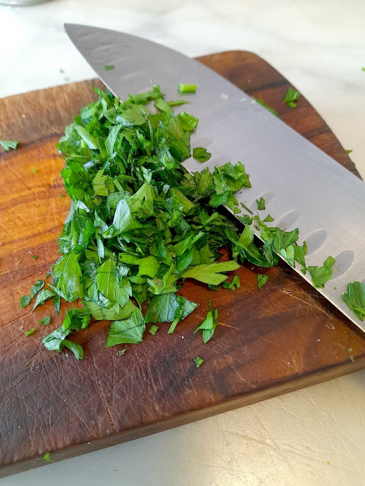 - 3 to 4 fresh flat-leaf parsley sprigs one left whole, and the others finely chopped, stems reserved