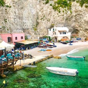 During the summer months one of our favorite activities is to jump on the vespa in the early morning hours and cruise the long and winding cliffside road that leads to the small fishing village of Praiano. Here, we like to indulge in the more leisurely lifestyle of the Amalfi Coast, which, naturally, includes relaxing on a quaint, pebbly beach surrounded by natural beauty, many dips in the deep, deep blue Tyrrhenian sea, and a more than delicious lunch.