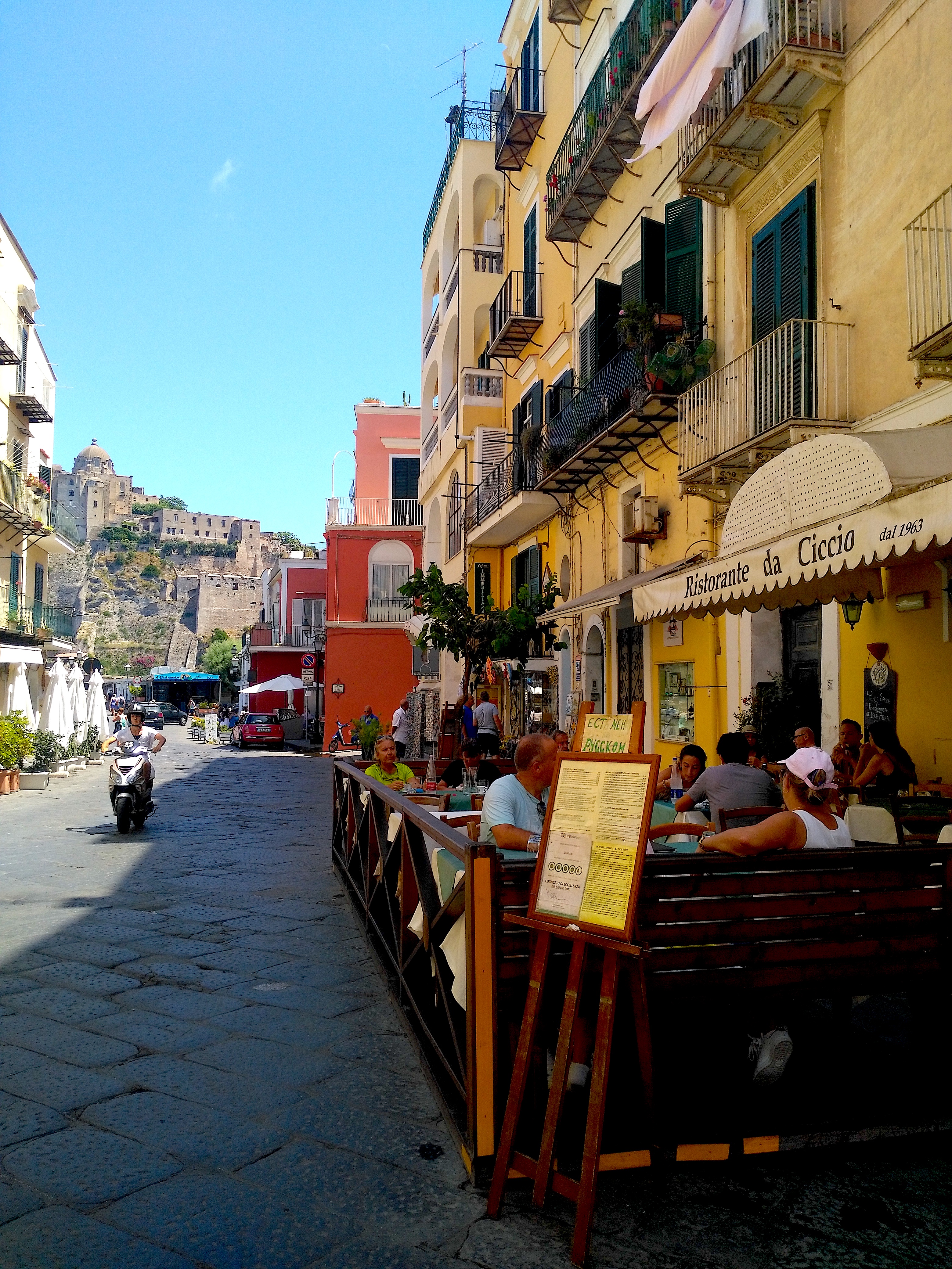 We usually delve into the local culture of Ischia Ponte with a visit to the castle in the late afternoon or early evening to take in its magnificence and the fragrance of the fresh sea air. Afterwards, we like to roam through the narrow, cobblestone streets lined with colorful buildings, churches, seafaring treasures, restaurants and cafes, and local specialty shops of all sorts. As the sun begins to set and the streets evoke a romantic ancient ambiance, we then like to head to a nice place to dine on some of the islands specialty dishes and take in the beauty of it all.