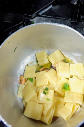 Off the heat, a little pecorino cheese is stirred into the pan to create the slightly creamy, cheese tinged mussel sauce that makes this pasta dish taste so delightfully good.