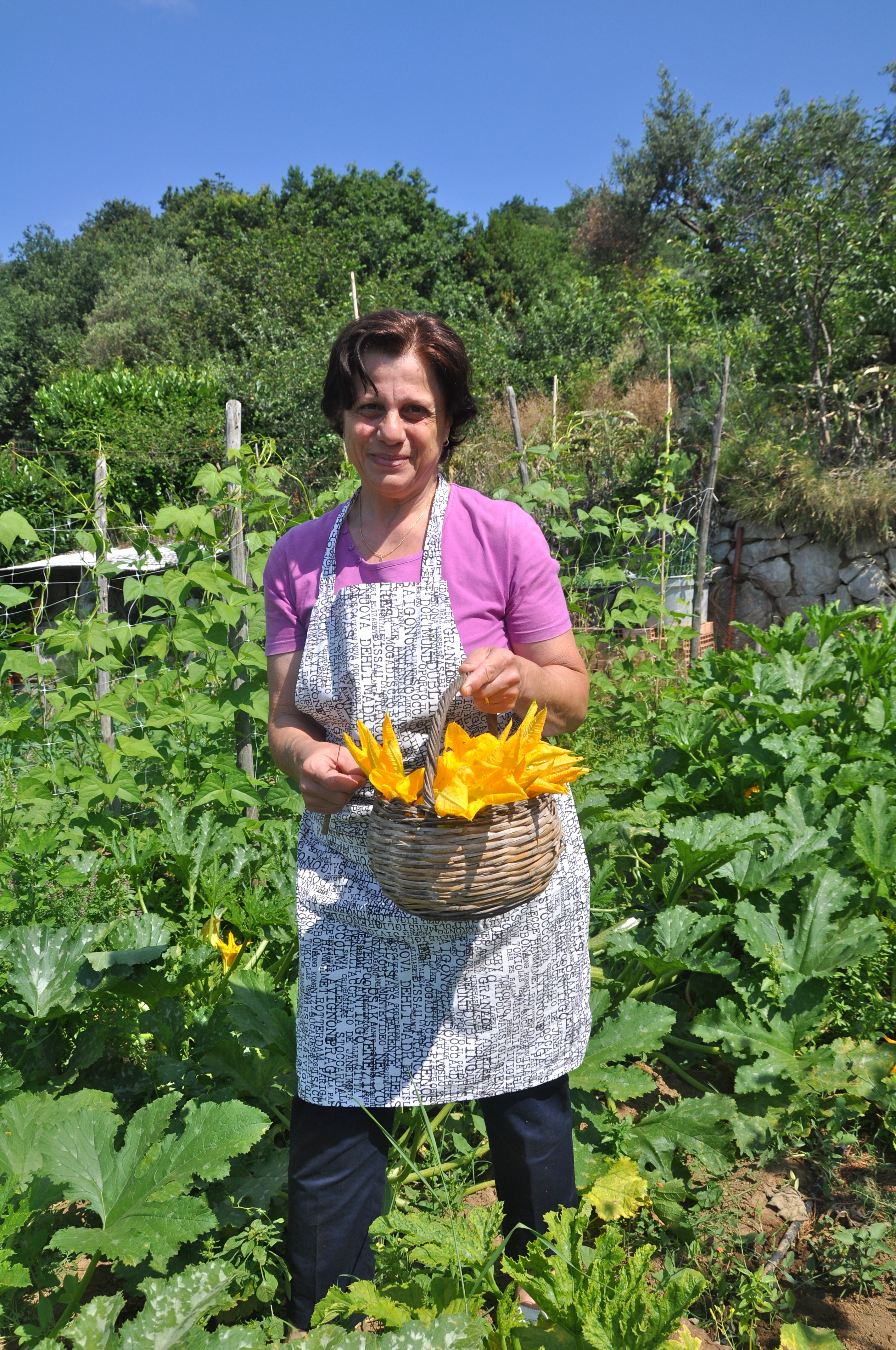 Who knew a late morning visit would lead to a day of great cooking? When I arrived I found Rosa strolling through their vegetable garden gathering some of the ripe, delicious edibles that she planned to put to good use in their restaurant later that day.