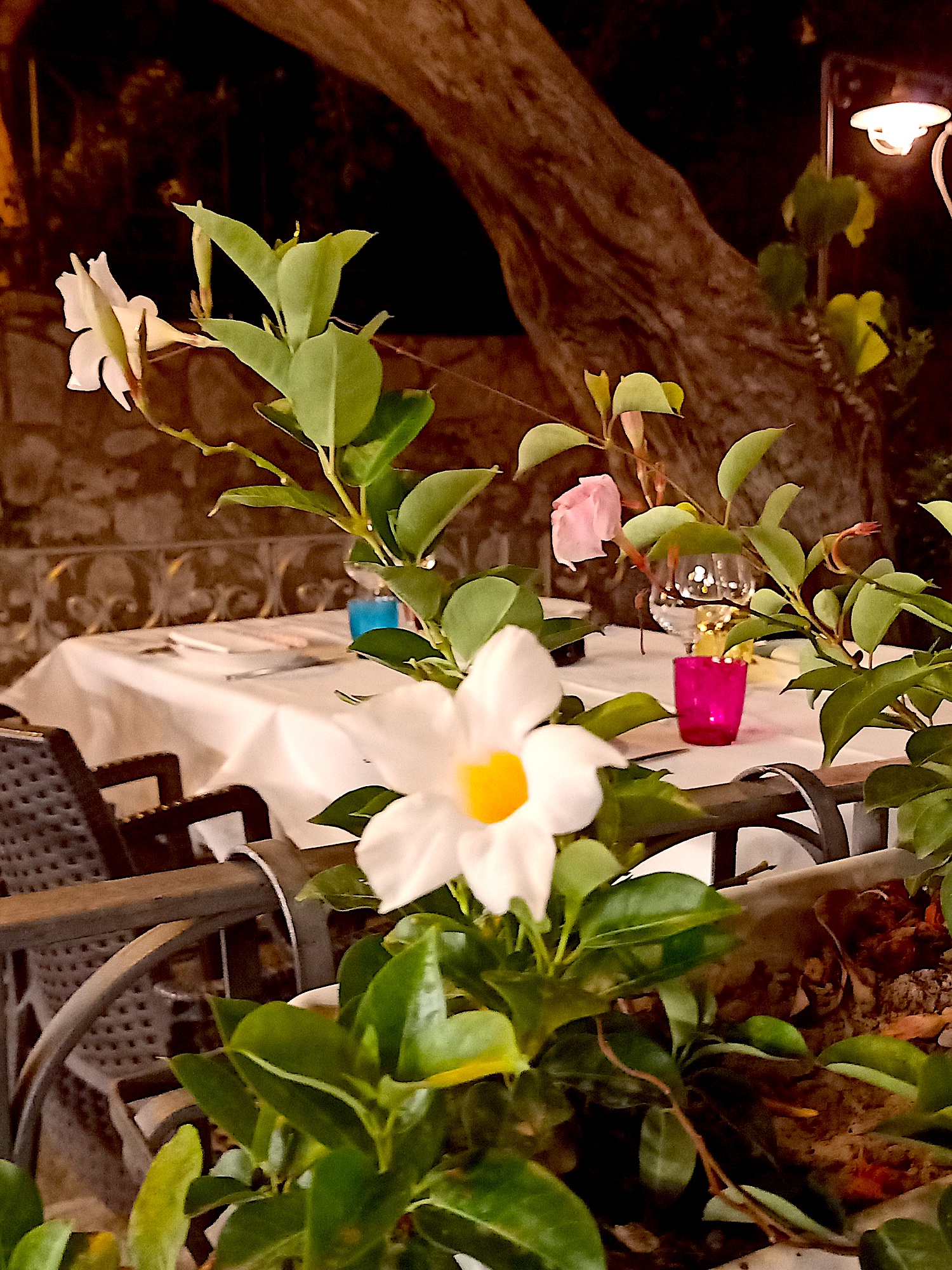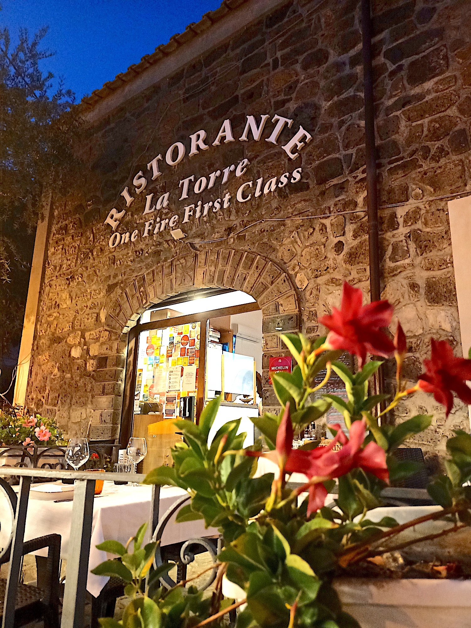 Situated in the charming hamlet of Annunziata in Massa Lubrense, with enchanting views of an ancient Saracen watch tower and 16th century church, Ristorante La Torre One Fire is a favourite neighbourhood place, and celebrated part of the Slow Food community in Italy. The setting is lovely any time of day, but evenings are my favorite, when dining al fresco on the flower-laden terrace under the soft light of the moon —casts a glow, and the whole ambiance becomes something magical.